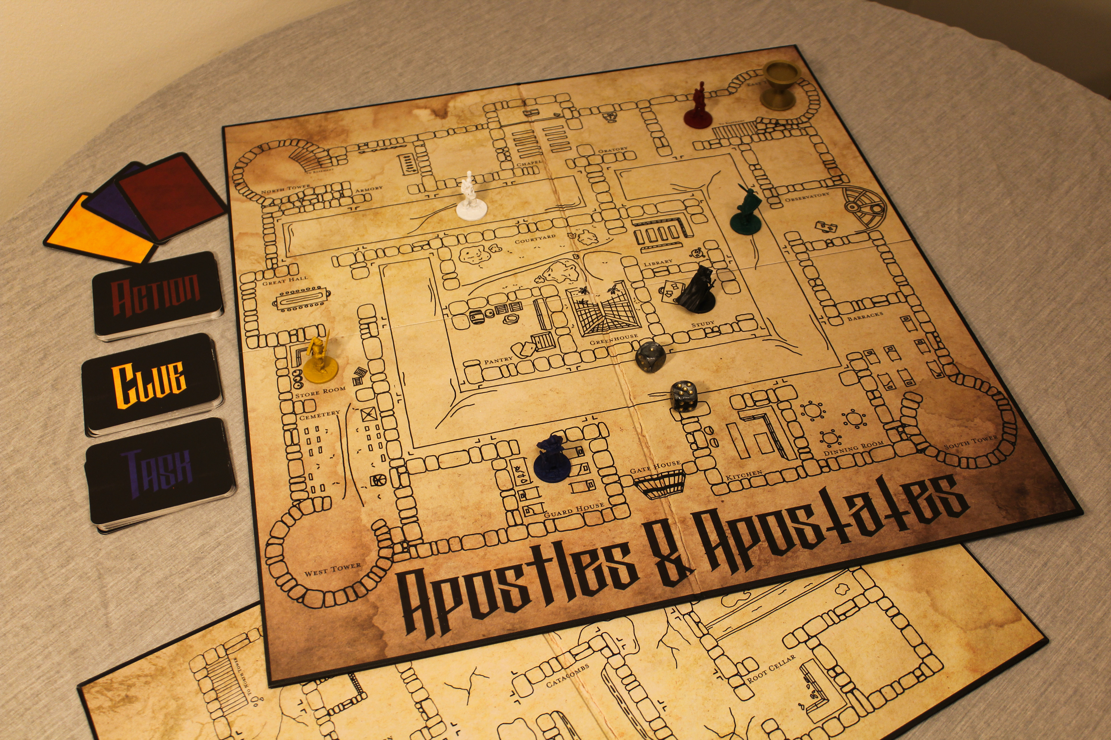 Apostles & Apostates is a brand new board game created by Devan Arntson, a Director of Christian Education in Merrill, WI. This three team game is all about finding the Holy Grail, through exploring the castle and building your teams through conversion.