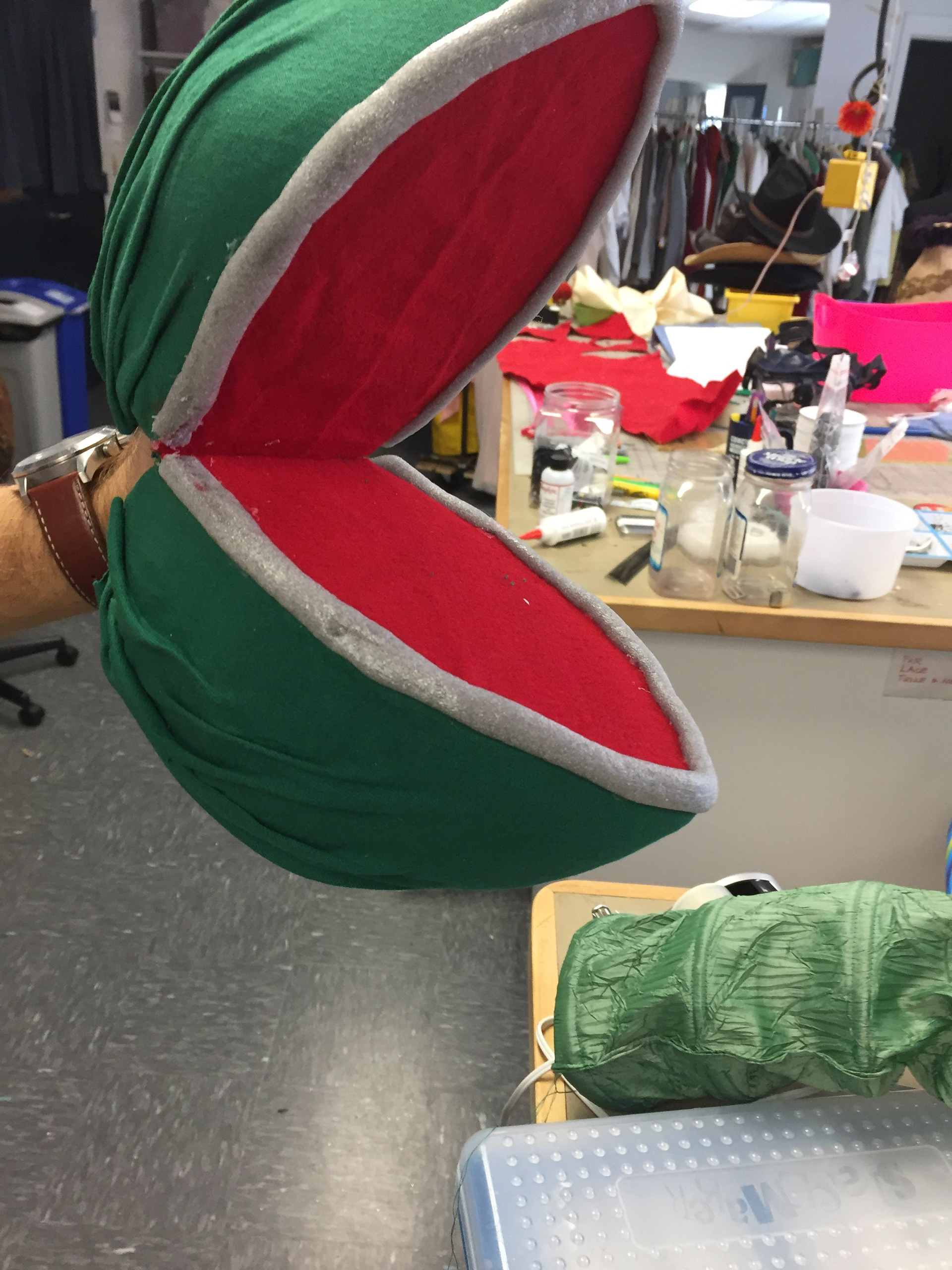 For the production of Little Shop of Horrors at Concordia University Saint Paul, I was asked to recreate two of the Audrey II puppets. The Puppets that we were renting were not good for this show and were in rough shape. I took the existing two bigger puppets and used them as inspiration for the smaller two.