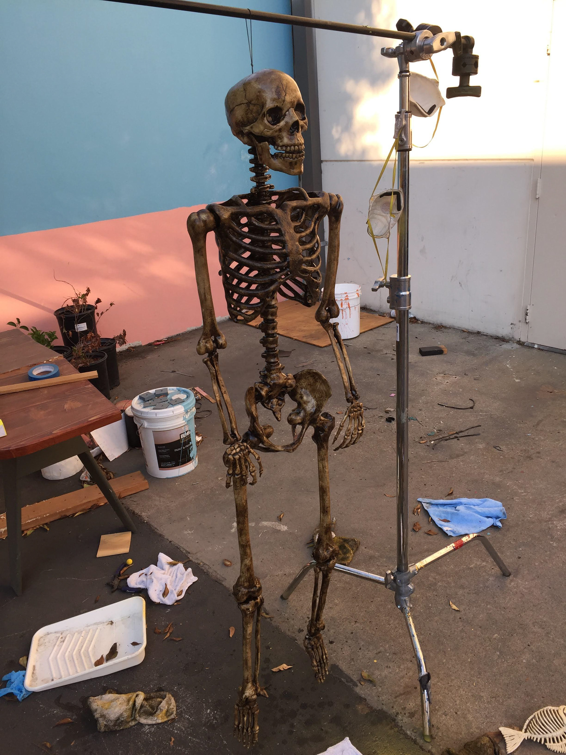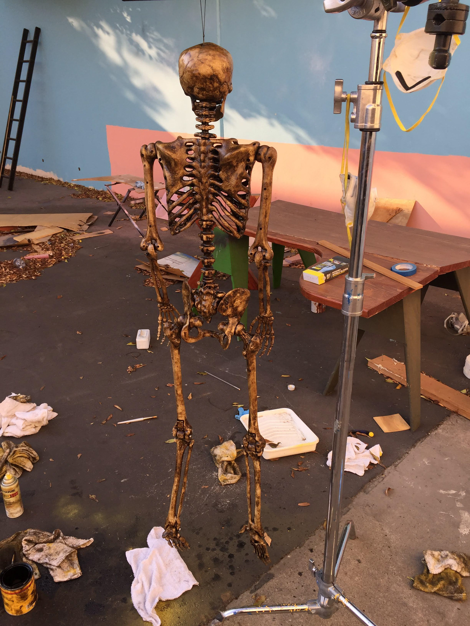 While working for Zach King Studios for a couple days with my friend, I was tasked with aging two skeletons to look old and rotting. Using a combination of wood stains and yellow spray paint, I was able to find a good color to make the skeletons look like they wanted them to.